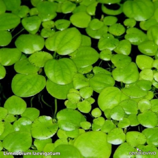 O Limnobium laevigatum, conhecido como orelha-de-onça, é uma planta flutuante de porte maior em comparação com Salvinias e Lentilhas d'água. Suas folhas são redondas, lisas e brilhantes, e podem desenvolver uma parte inferior esponjosa que a ajuda na flutuação. O grande destaque são suas raízes longas, brancas e finas, que criam um efeito visual incrível no aquário, lembrando as raízes de manguezais. Essas raízes servem como um refúgio ideal para peixes de diversas espécies e tamanhos, além de serem uma excelente área de pastagem para camarões. É uma planta de crescimento rápido e muito resistente, que consome uma grande quantidade de nitratos, ajudando a manter a qualidade da água. É uma das flutuantes mais ornamentais e funcionais para aquários abertos.
